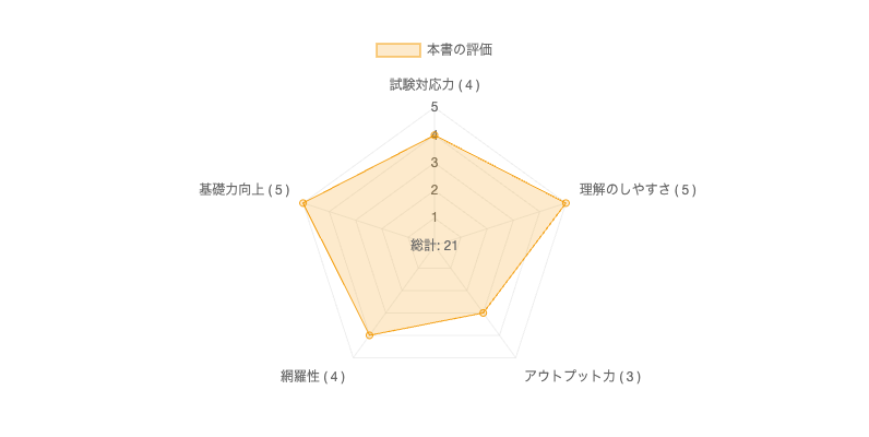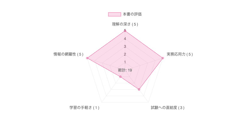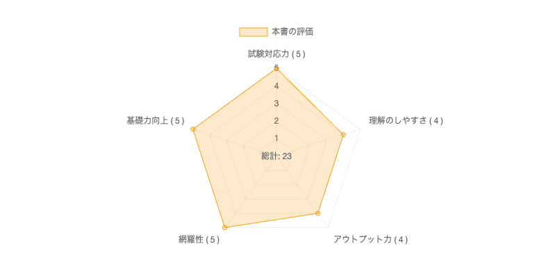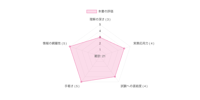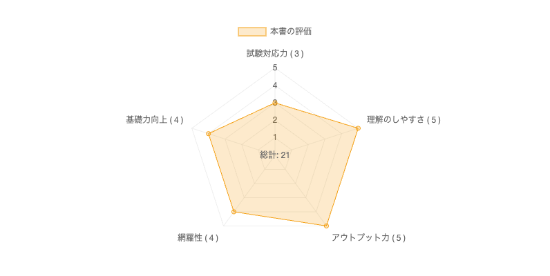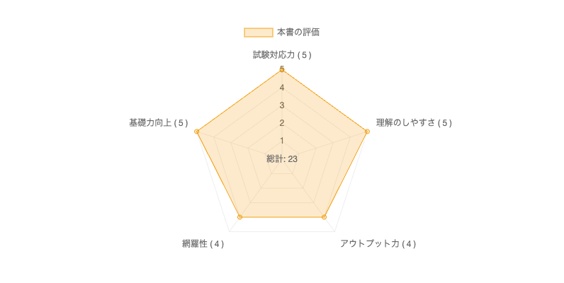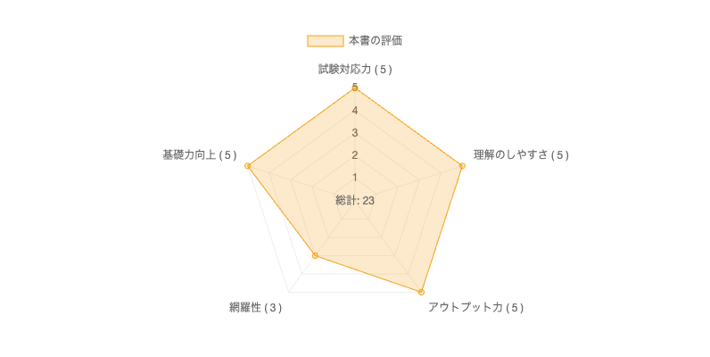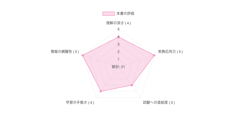 この記事では、それぞれの書籍がどのように役立ったか、主観ではありますが5項目のレーダーチャートを用いて評価していきます。