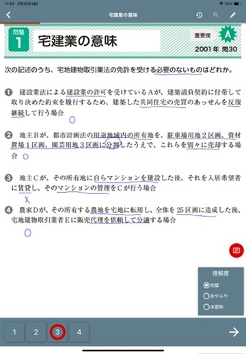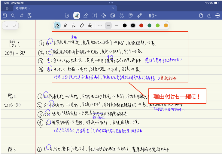 また、私は2周演習を行なったのですが、2周目は『分野別過去問題集』付録の全問アプリをiPadにインストールし学習を行いました。