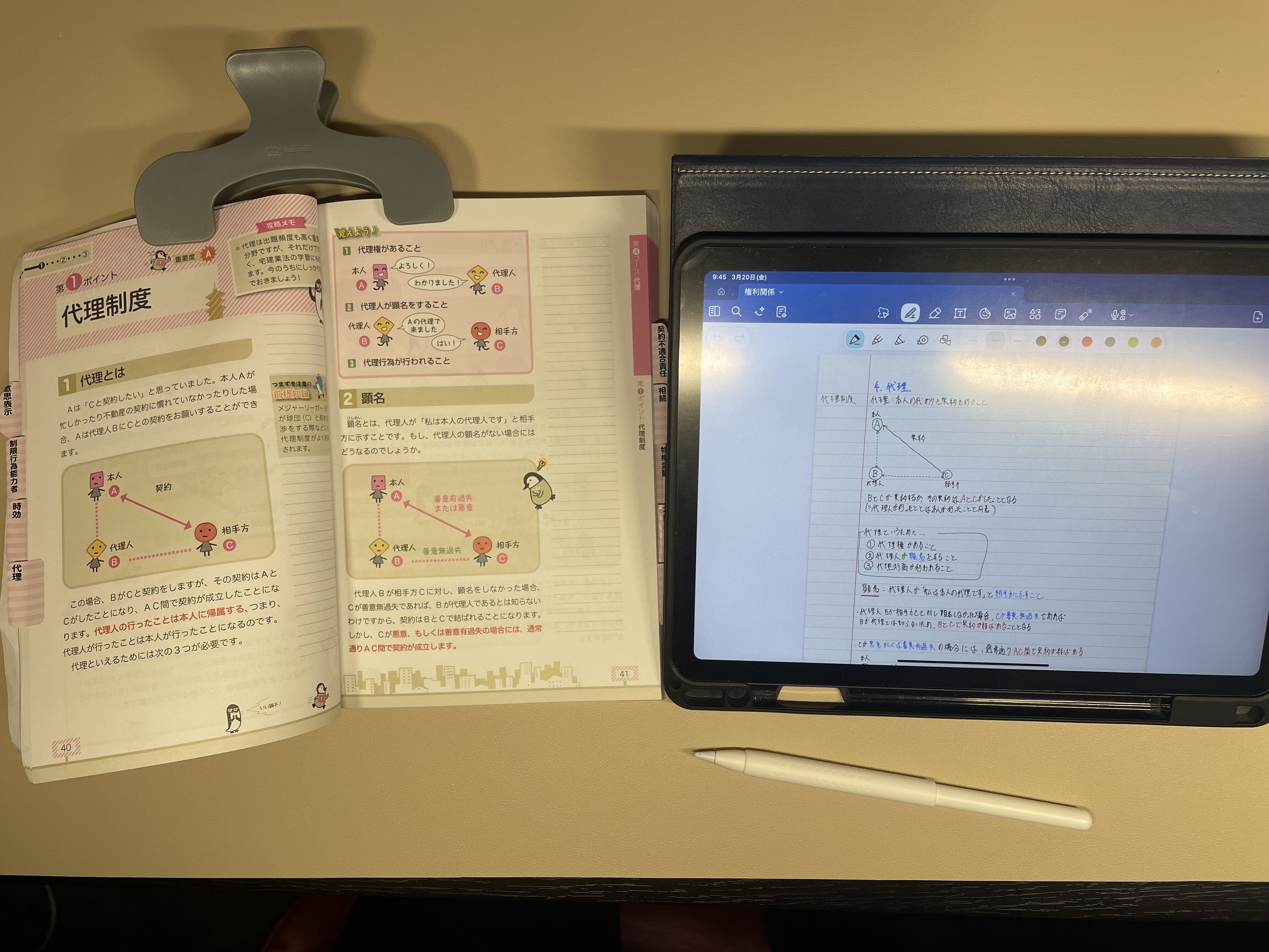という状況だったため、基本テキスト+iPadのノートアプリ「Goodnotes」を利用し、まとめノートの作成を行っていました。